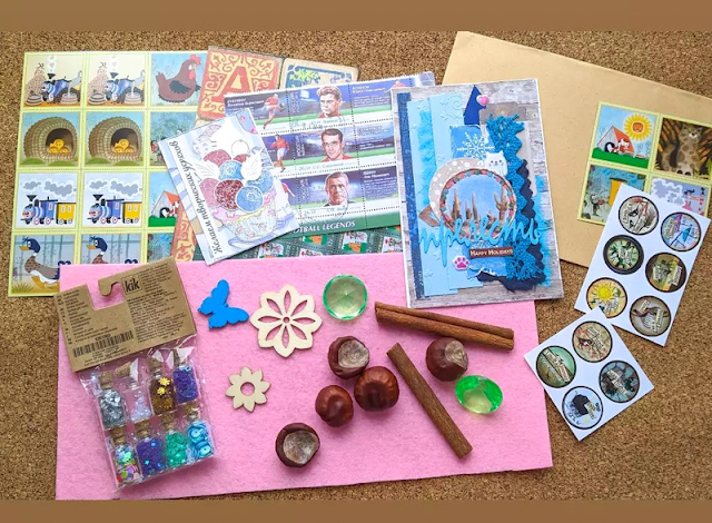Виктория просто так прислала чудесный подарок. Очень необычное, оригинальное содержание)) Спасибо за открытку и АТС отдельное! Остальное тоже классное, что-то в скрап, конечно, не пойдёт, но с детьми сделаем что-нибудь) у меня такого нет, потому ценно)) кое-что подойдёт для джанков, блестюшки точно пригодятся, да и фетр тоже. В общем, все пристроим, вопрос только времени))