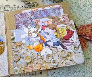 На передней обложке и на всех страничках есть пуговки. Поэтому загляну в задание от сб Скрап-Просторы с пуговками. У меня настоящие + шикарный принт с пуговками